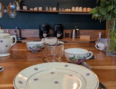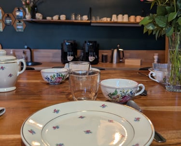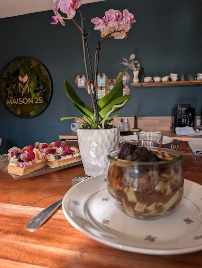 Dégustez dans nos tasses en faïence de Lunéville un café en grains ou thé. Nous sélectionnons avec soin des jus de fruits pour agrémenter vos pauses et du vin (avec modération).