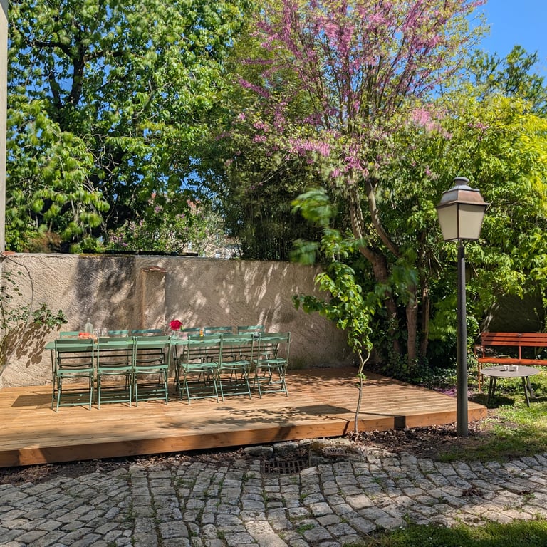 🌿 Grande terrasse aménagée -Jardin arboré et apaisant - Salon de jardin convivial - Fauteuils et bancs confortables